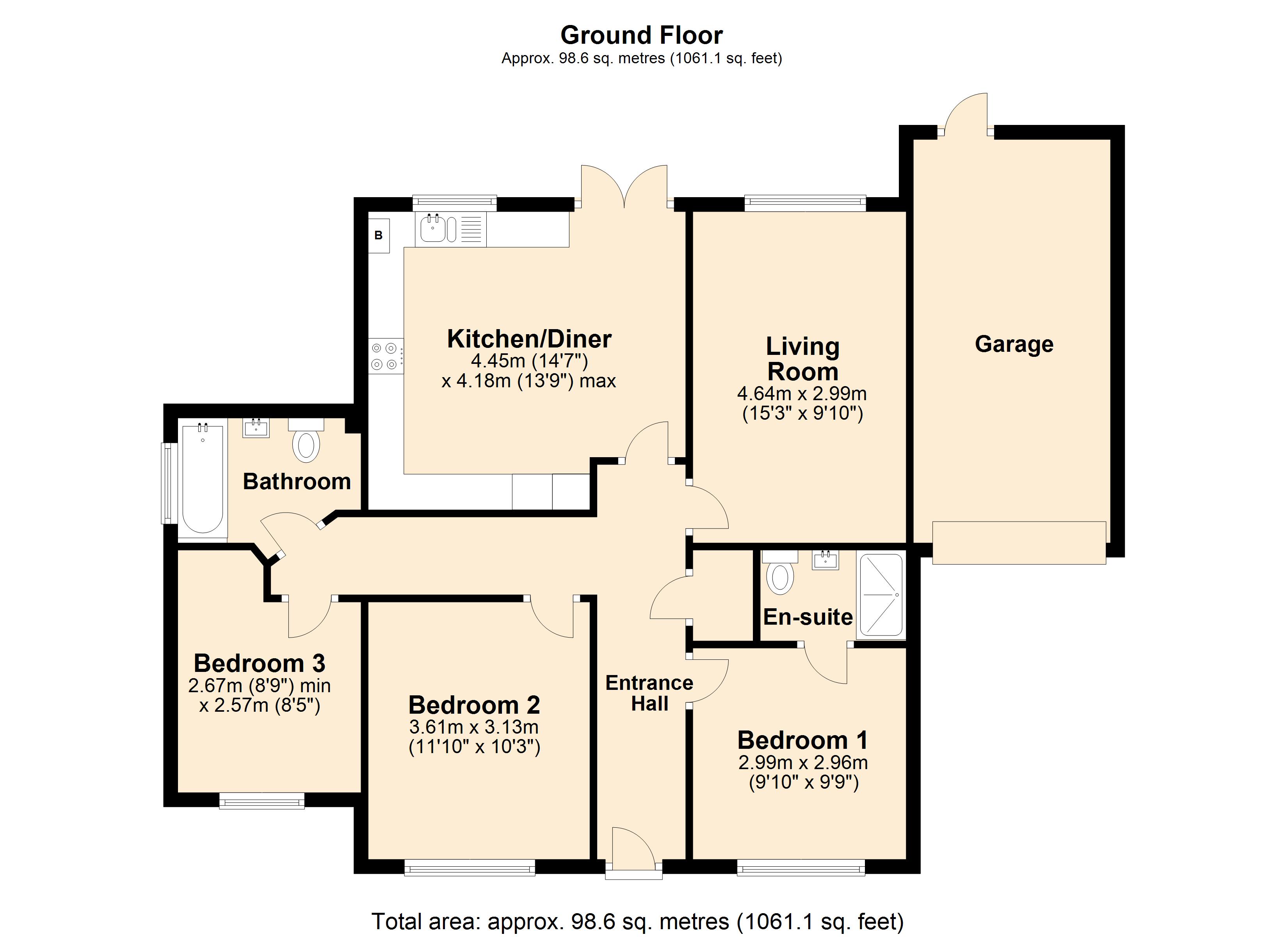 Plot 34 is a three bedroom link detached bungalow with buff brick elevations and attached single garage. The property enjoys a spacious entrance hall, stunning kitchen /diner with French doors leading out to an easy to maintain sunny aspect rear garden, bedroom with stylish en-suite shower room, light and airy living room, family bathroom, utility cupboard and an electric vehicle charging point.