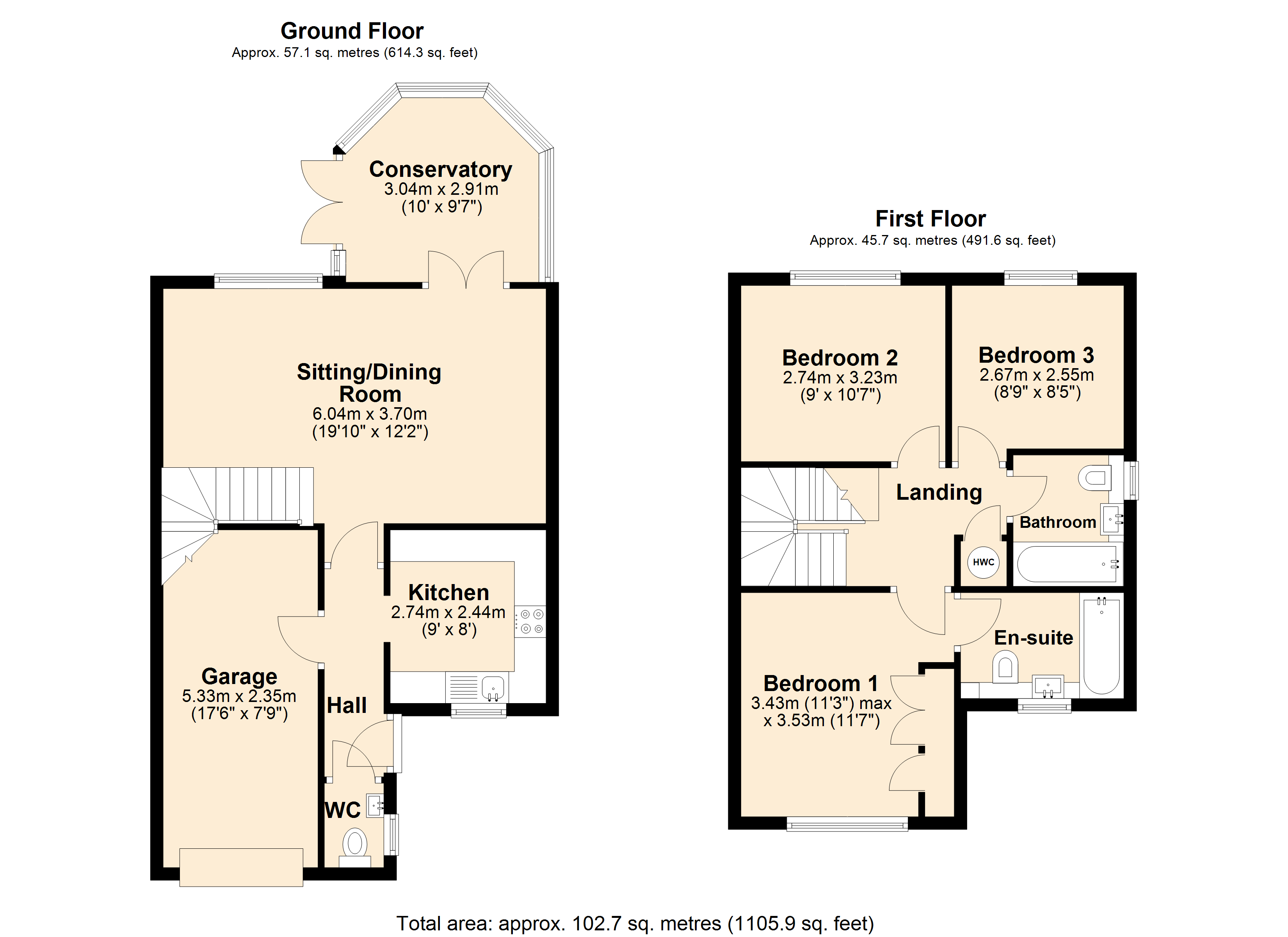 Inside, the accommodation is both spacious and functional. Highlights include a bright conservatory leading off the living room, a convenient downstairs cloakroom, a principal bedroom with fitted wardrobes, and contemporary bathrooms finished to a high standard.