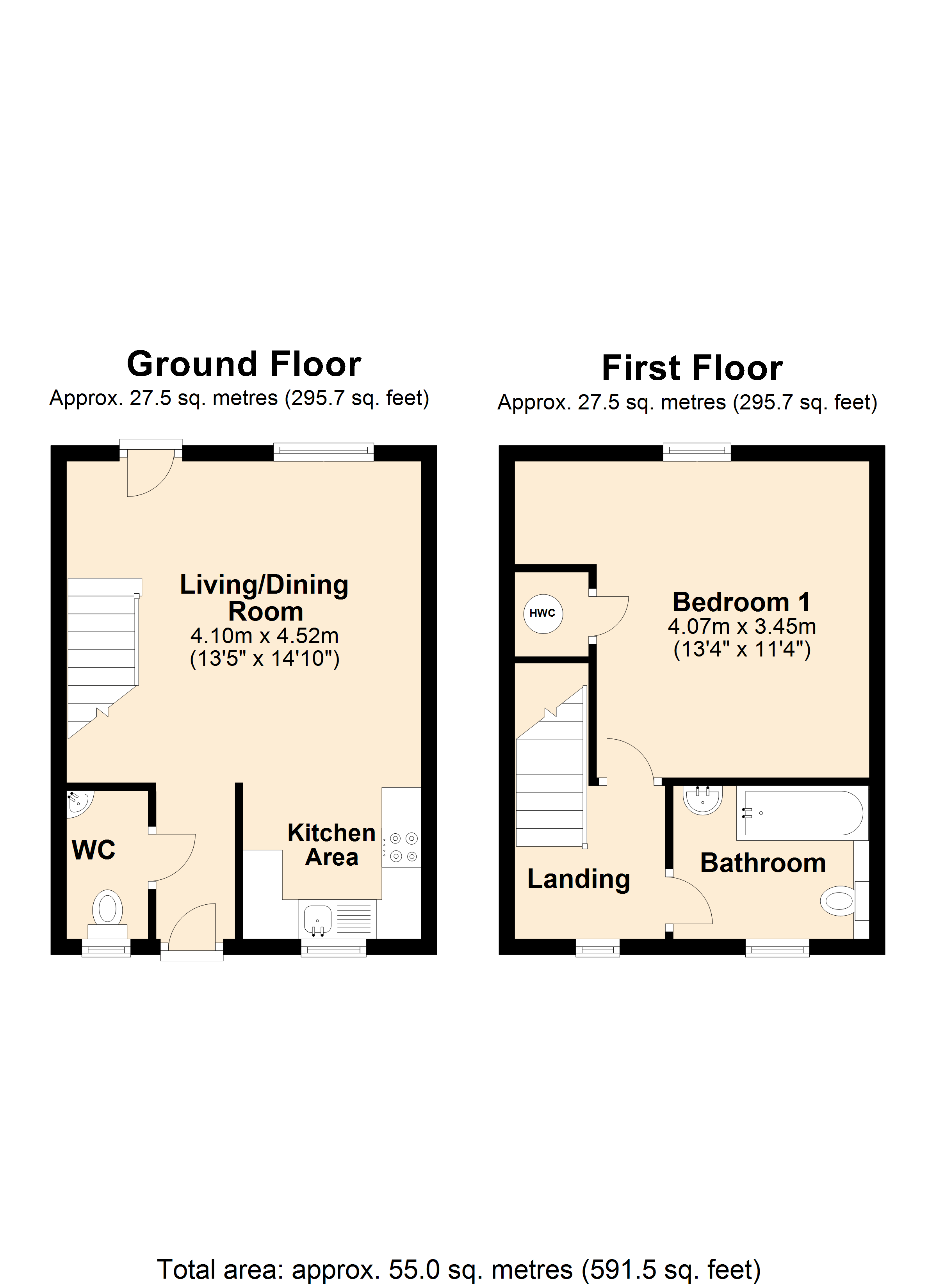 A welcoming entrance hall provides access to a useful cloakroom before leading through to the the living room. From here, a door opens directly onto a small enclosed garden — an inviting space for alfresco dining or quiet relaxation. The partly open-plan kitchen enhances the sense of space, featuring a good range of units with a built-in oven and hob.