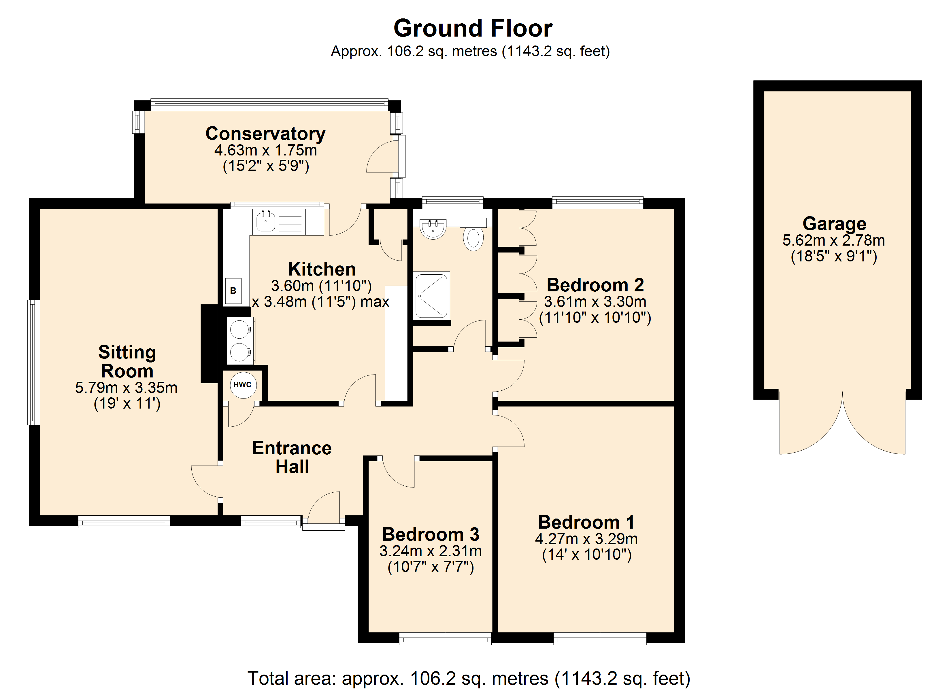 There are three bedrooms in total, including two generous double rooms and a good size single bedroom, perfectly suited as a home office or guest room. The accommodation is completed by a neatly appointed shower room.