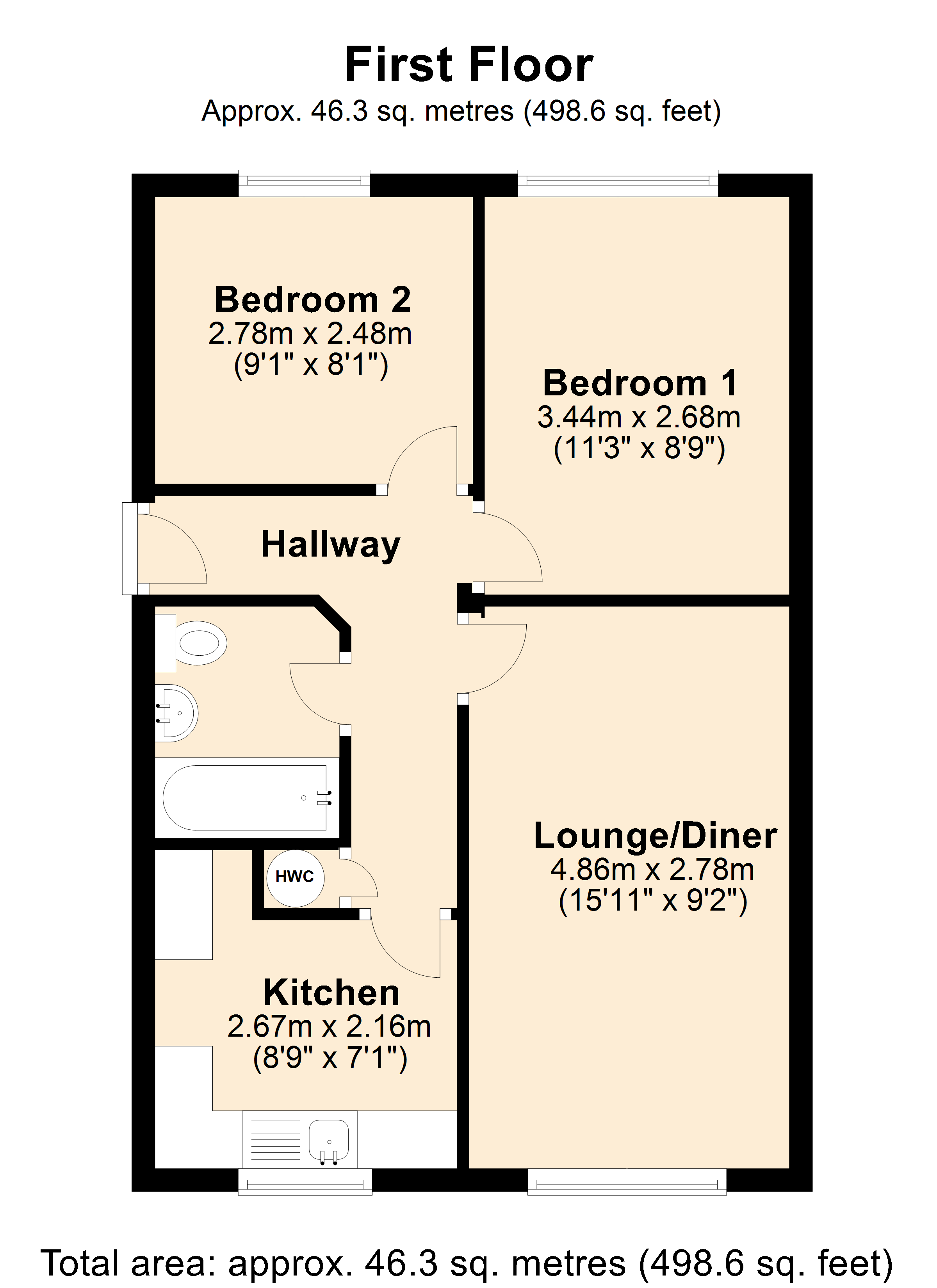 A two bedroom first floor flat situated in a convenient location within a short walk of the town centre amenities.