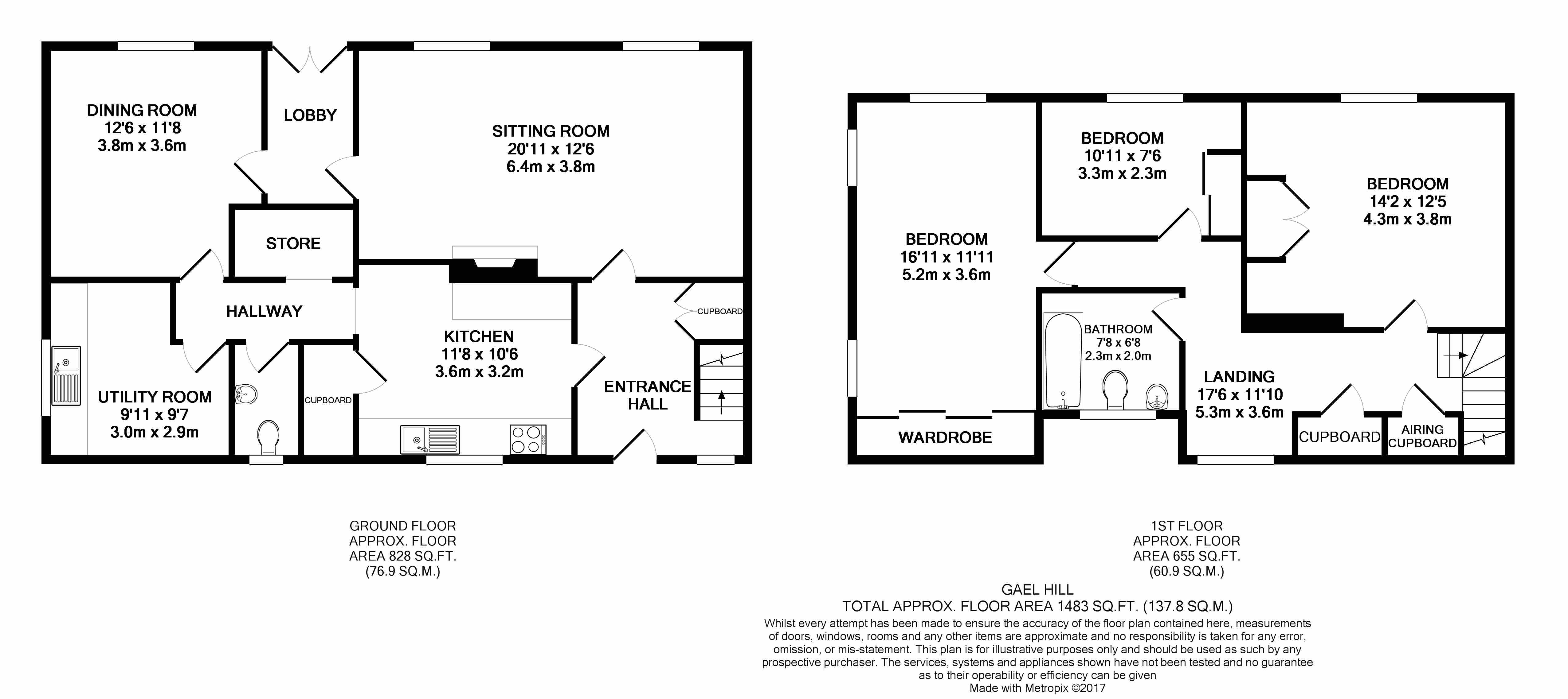UTILITY ROOM: 9’11” x 9’7” Useful room, well proportioned, roll edge worktops, inset double bowl stainless steel sink and drainer with swan neck mixer tap, mosaic tiled splash backs, porcelain floor tiles. Wall hung Valliant gas boiler servicing gas central heating and domestic hot water. Floor cabinet, space and plumbing for washing machine and tumble dryer. Dual aspect UPVC double glazed windows, wall hung electric fuse board and fuse box, painted wooden back door.