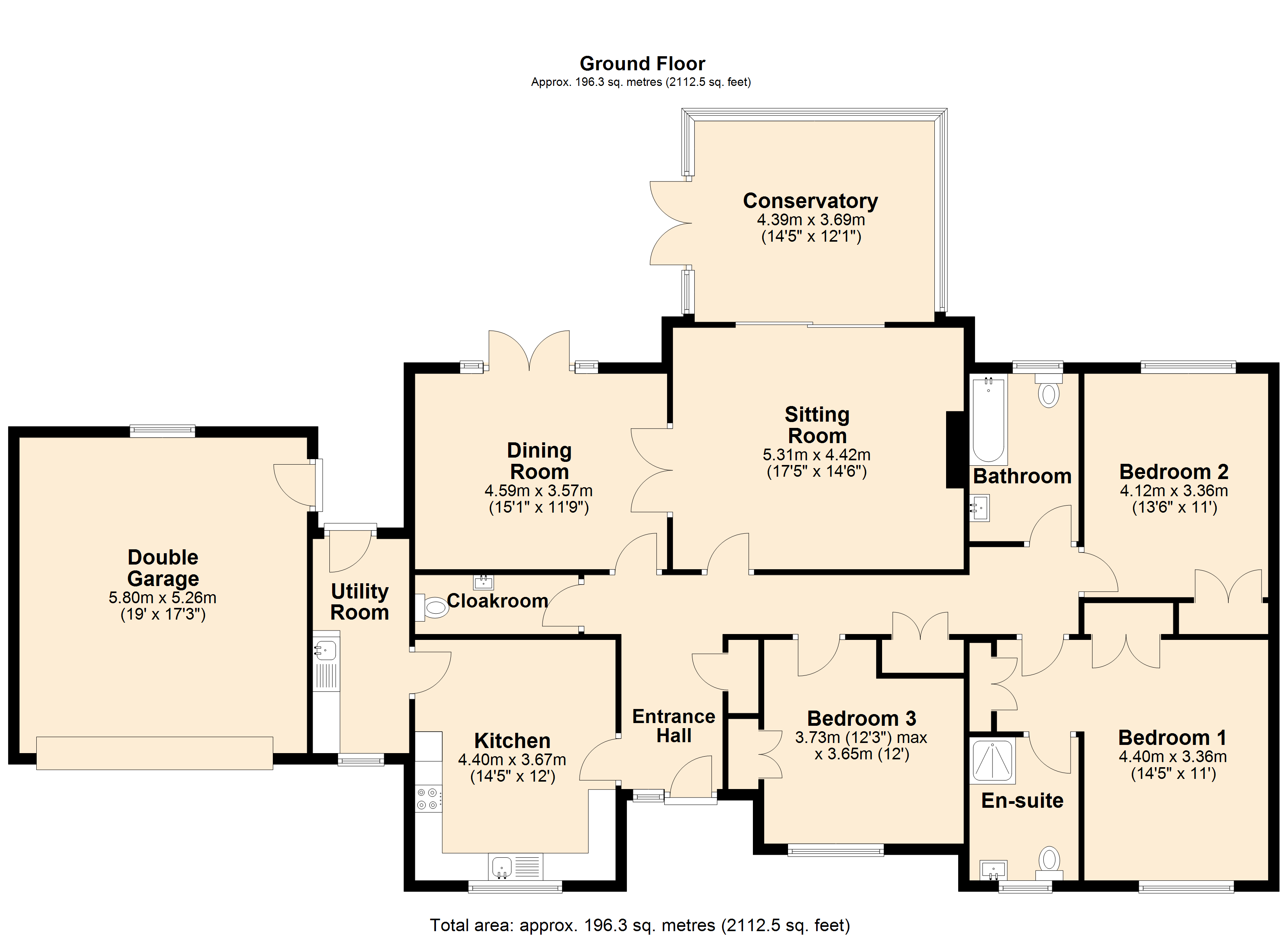 Bright conservatory/garden room overlooking the rear garden Well-equipped fitted kitchen with space for breakfast table