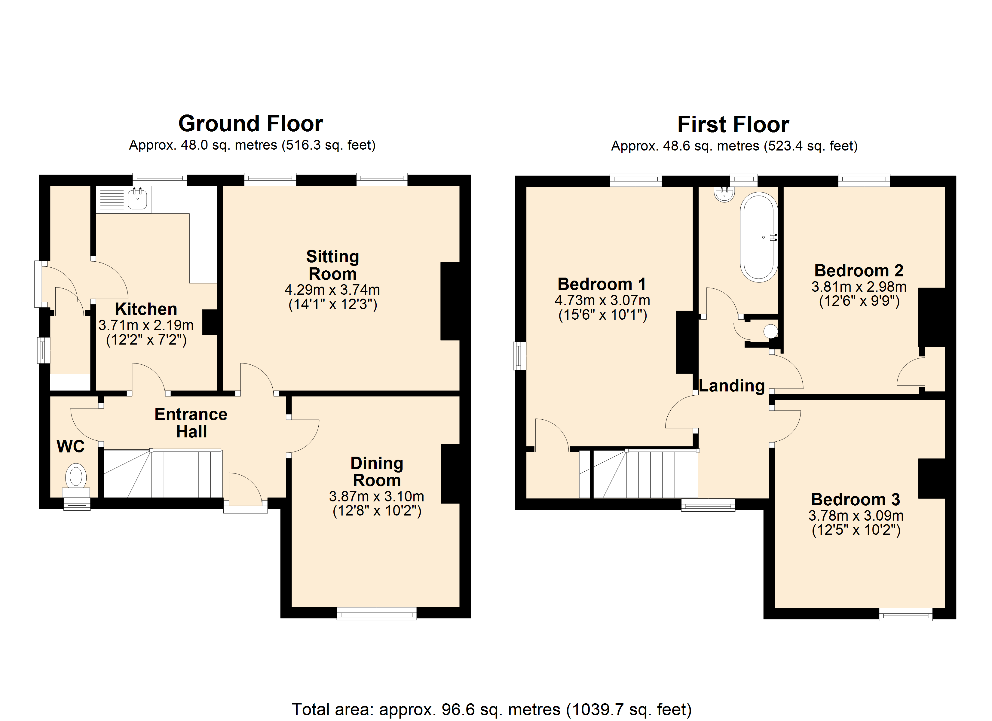 The front door opens into a spacious entrance hallway, with the convenience of a downstairs WC located just off. Straight ahead, the generous sitting room features an open fireplace and two south facing windows, flooding the room with natural light while framing the delightful countryside views.